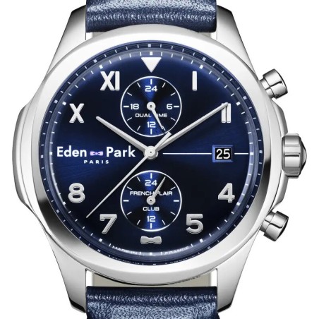 MONTRE HOMME EDEN PARK FRENCH FLAIR CLUB BRACELET CUIR BLEU CADRAN BLEU SOLEIL DATEUR CHRONOGRAPHES