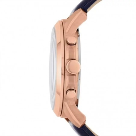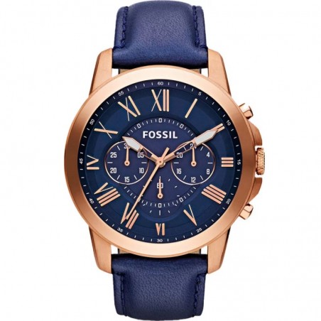 Montre Homme Fossil en Acier doré rose et Cuir bleu