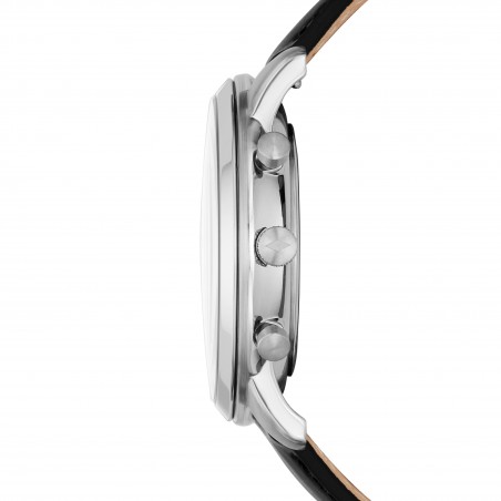 Cette montre, issue de la collection Neutra est en acier et cuir noirs.