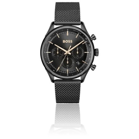 MONTRE HOMME HUGO BOSS GREGOR BRACELET MILANAIS NOIR CADRAN NOIR