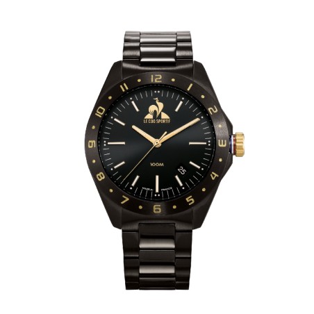 MONTRE HOMME LE COQ SPORTIF ACIER NOIR INDEX DORE