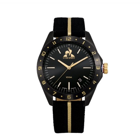 MONTRE HOMME LE COQ SPORTIF BRACELET CUIR NOIR INDEX DORE
