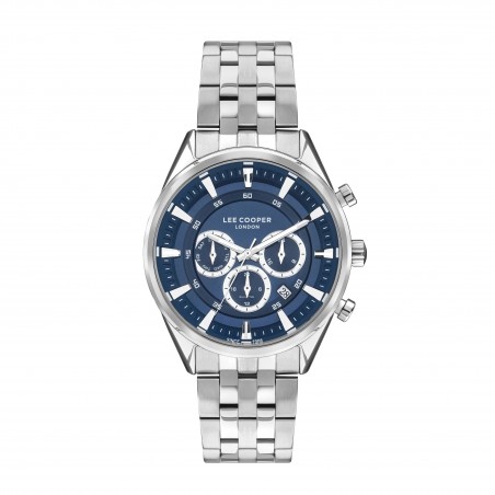 Montre Homme Lee Cooper en métal argenté et cadrant bleu