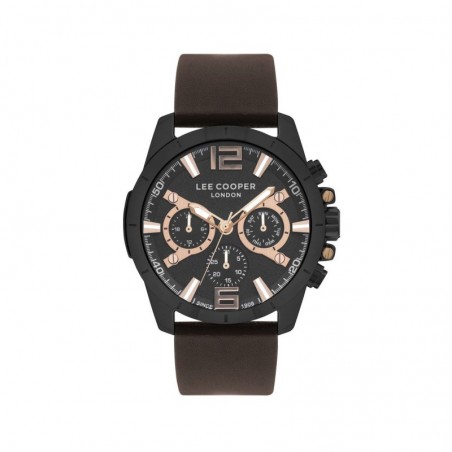 montre Homme Lee Cooper en métal noir et bracelet en silicone marron