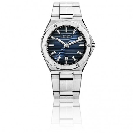 Son cadran à l'allure énergique, grâce à un fond aux lignes horizontales d’inspiration marine, affiche des index bâtons ainsi qu'un mécanisme à trois aiguilles.