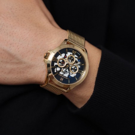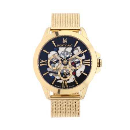 Montre Homme Montignac Automatique en acier doré Bracelet maille milanaise