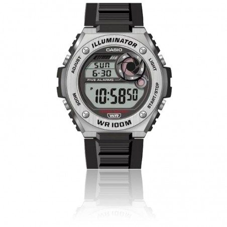 Ce modèle à quartz possède un bracelet et un boitier en résine ainsi qu'un écran éclairés par une diode électroluminescente pour une lecture optimale.