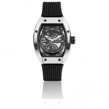 Son boitier tonneau est gris argent et son bracelet en silicone noir vous apporteront un porté à la fois agréable et doux.