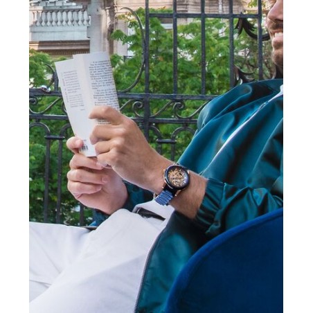 Son cadran bleu mets en valeur les aiguilles ainsi que les index en or rose pour une lecture optimale.