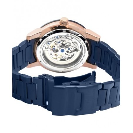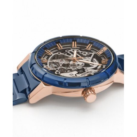 Elle se compose d'un boitier rond de 45mm en acier bleu et d'un bracelet en acier inoxydable.