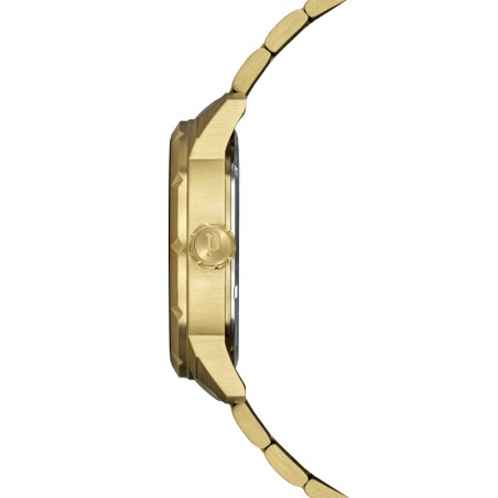 Ce modèle en acier vous séduira par son caractère rebelle et tendance et son alliance tout en contraste entre doré et noir.