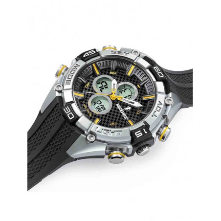Son cadran gris met en valeur les aiguilles ainsi que les index bâtons jaunes pour une lecture idéale.