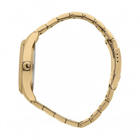 Elle possède un boitier rond de 41mm et un bracelet en acier couleur or.