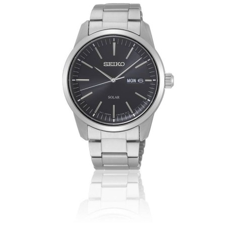 Montre Homme Seiko bracelet acier argenté cadran noir
