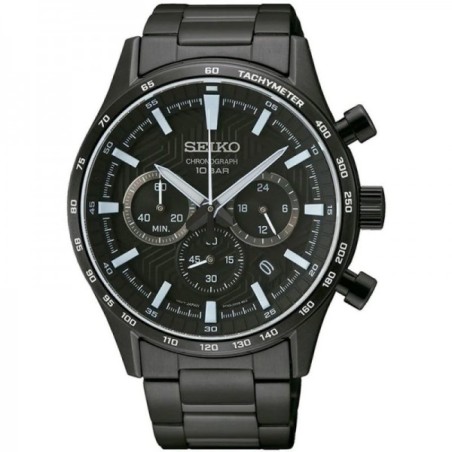 Montre Homme Seiko chronographe bracelet acier cadran noir