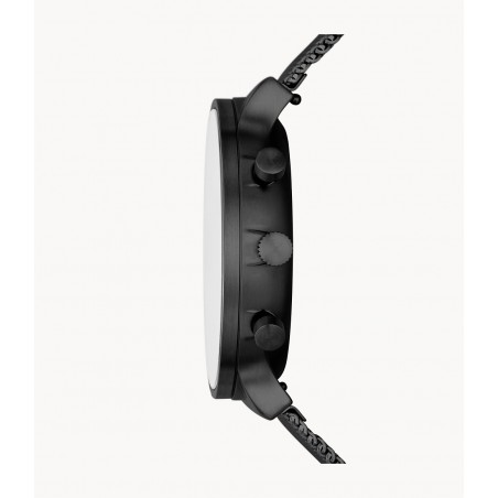 Elle possède un boîtier rond de 40mm et un bracelet en acier noir également de couleur noire.