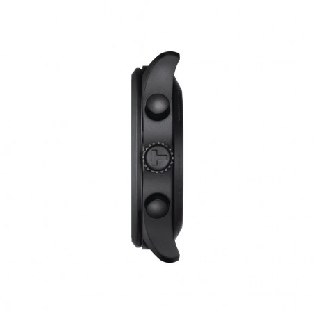 Son boitier noir mat abrite un cadran noir également parsemé de touches blanches matérialisées par les index et les aiguilles.