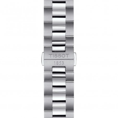 Son bracelet est en acier maille Oyster et se referme grâce à un système papillon avec boutons poussoirs.
