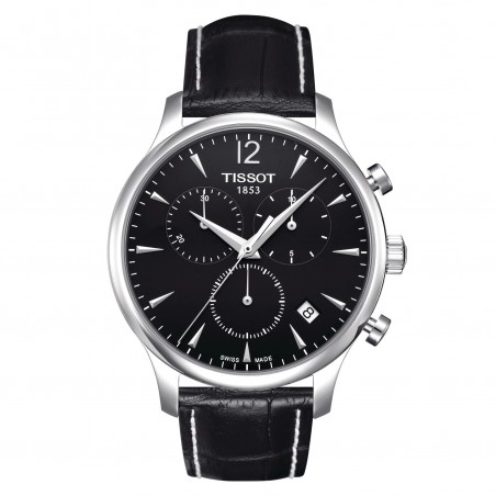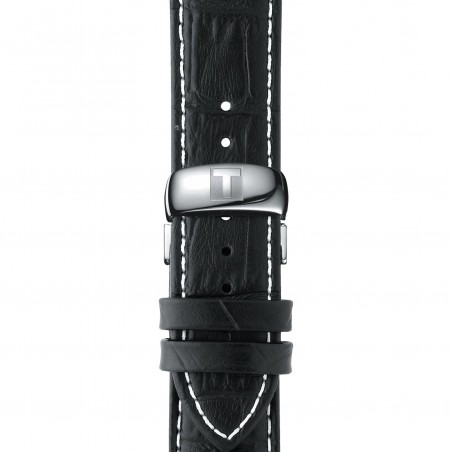 Le logo de la marque, Tissot 1853, a pris place à midi et un guichet dateur noir sur fond blanc à entre 4h et 5h.
