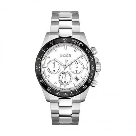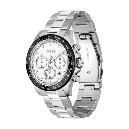 Montre Hugo Boss Hero en acier argenté cadran blanc lunette et noire