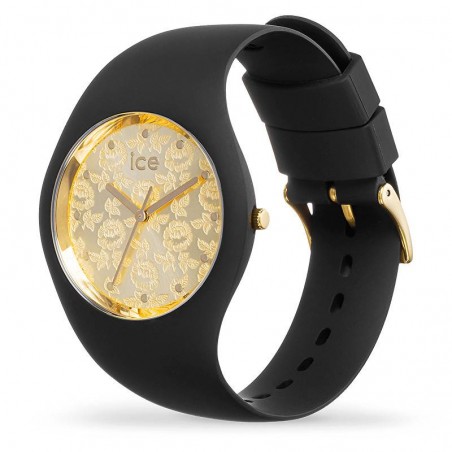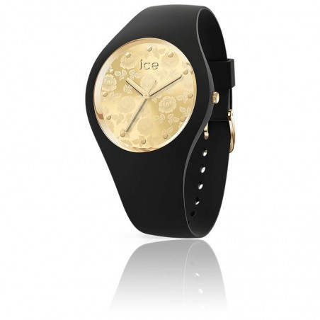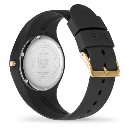 Elle possède un fermoir ardillon doré (Gold) et un bracelet en silicone noir.