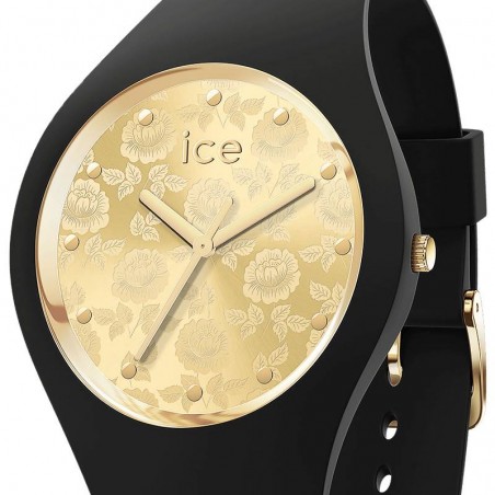 Le cadran affiche plusieurs fleurs de tailles différentes ainsi que logo de la marque à midi.