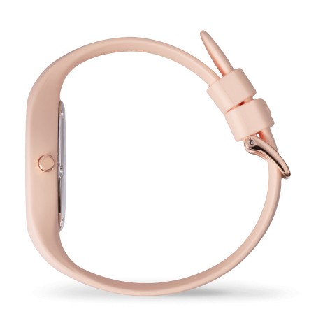 Ce modèle possède aussi un fermoir de type boucle ardillon et un bracelet en silicone rose pale.