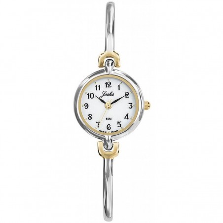 Cette montre-bracelet incarne la finesse pour cause son boitier rond bicolore et son bracelet jonc sont décorés d'une éclatante couleur dorée et argentée.