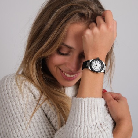 Montre KAB Femme Mauboussin en acier avec diamants et bracelet en silicone noir