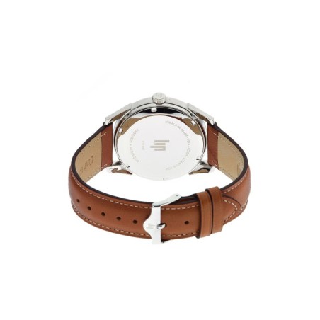 Montre Lip Himalaya bracelet cuir marron fond gris avec dateur