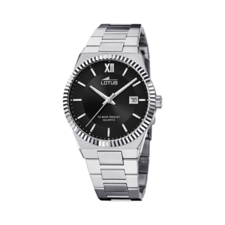 Montre Lotus Homme Freedom bracelet acier argenté fond noir avec dateur