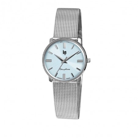 Montre mixte LIP Dauphine argenté bracelet maille milanaise et cadrant bleu