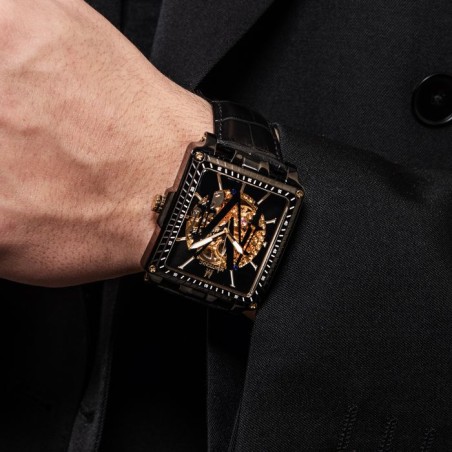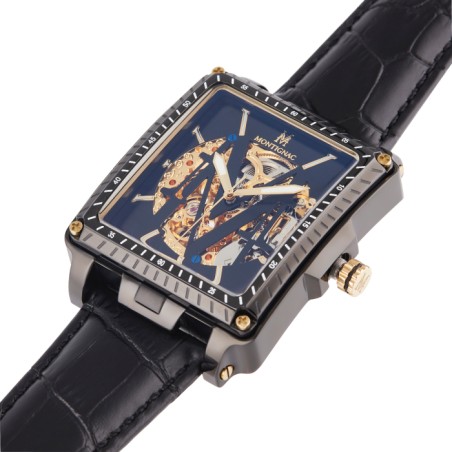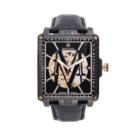 Montre Montignac automatique boitier rectangle bracelet en cuir noir
