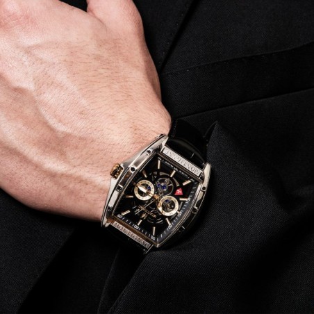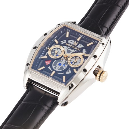 Montre Montignac boitier tonneau bracelet en cuir noir