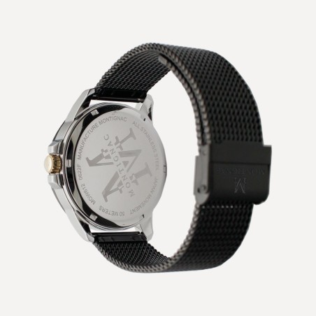 Montre Montignac bracelet mailles milanaises noires