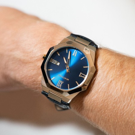 Montre Montignac cadran octogonal bracelet en cuir noir