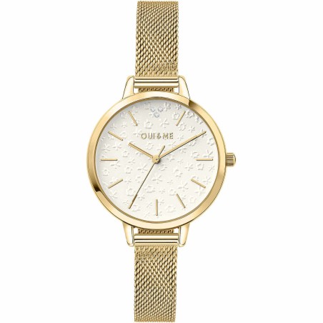 Montre Oui & Me acier doré rose fond fleuri beige avec oxydes de zirconium