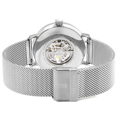 Issue de la collection GAIUS, elle possède un boitier rond de 40mm ainsi qu'un bracelet en maille milanaise en acier de couleur argentée.