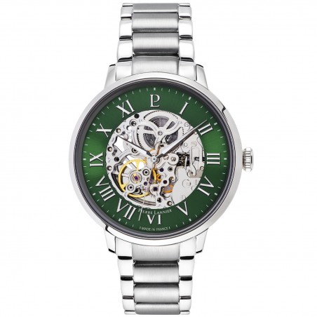 MONTRE PIERRE LANNIER HOMME AUTOMATIQUE acier argenté fond vert