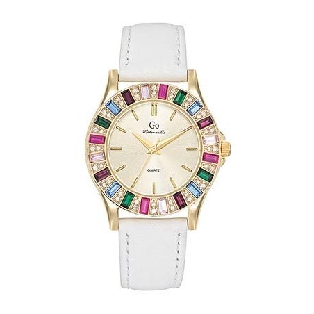 Montre pierres Femme GO Boîtier doré et cuir blanc