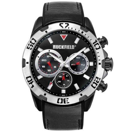 Montre Ruckfield Homme acier et cuir noir multifonctions