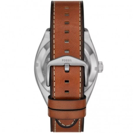 Montre Squelette Homme Fossil en Acier et Cuir Marron