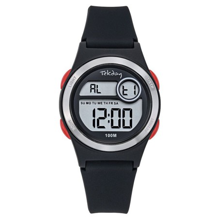Montre Tekday Enfant digital silicone noir boutons rouge multifonctions