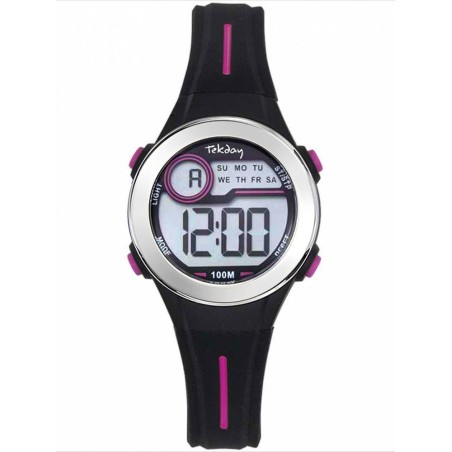 Montre Tekday Enfant digital silicone noir et rose avec chronomètre