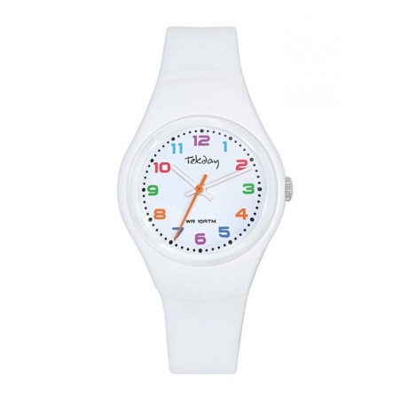 Montre Tekday Enfant silicone blanc fond blanc index multicolores