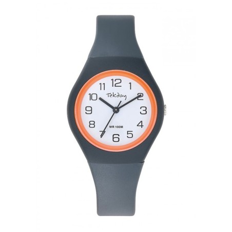 Montre Tekday Enfant silicone gris fond de cadran blanc avec liseré orange