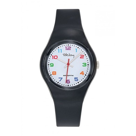 Montre Tekday Enfant silicone noir fond blanc index multicolores