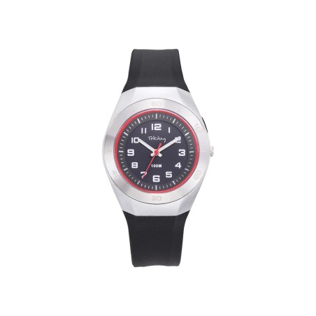 Montre Tekday Enfant silicone noir fond noir contour de cadran rouge