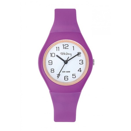 Montre Tekday Enfant silicone violet fond de cadran blanc avec liseré beige