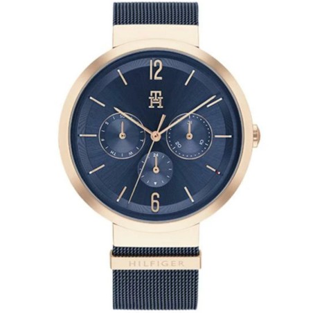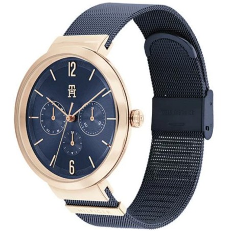 Montre Tommy Hilfiger Femme bracelet milanais bleu boitier cadran doré rose